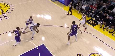 这球恩比德造了犯规,斯玛特有点不满。#76人vs湖人#